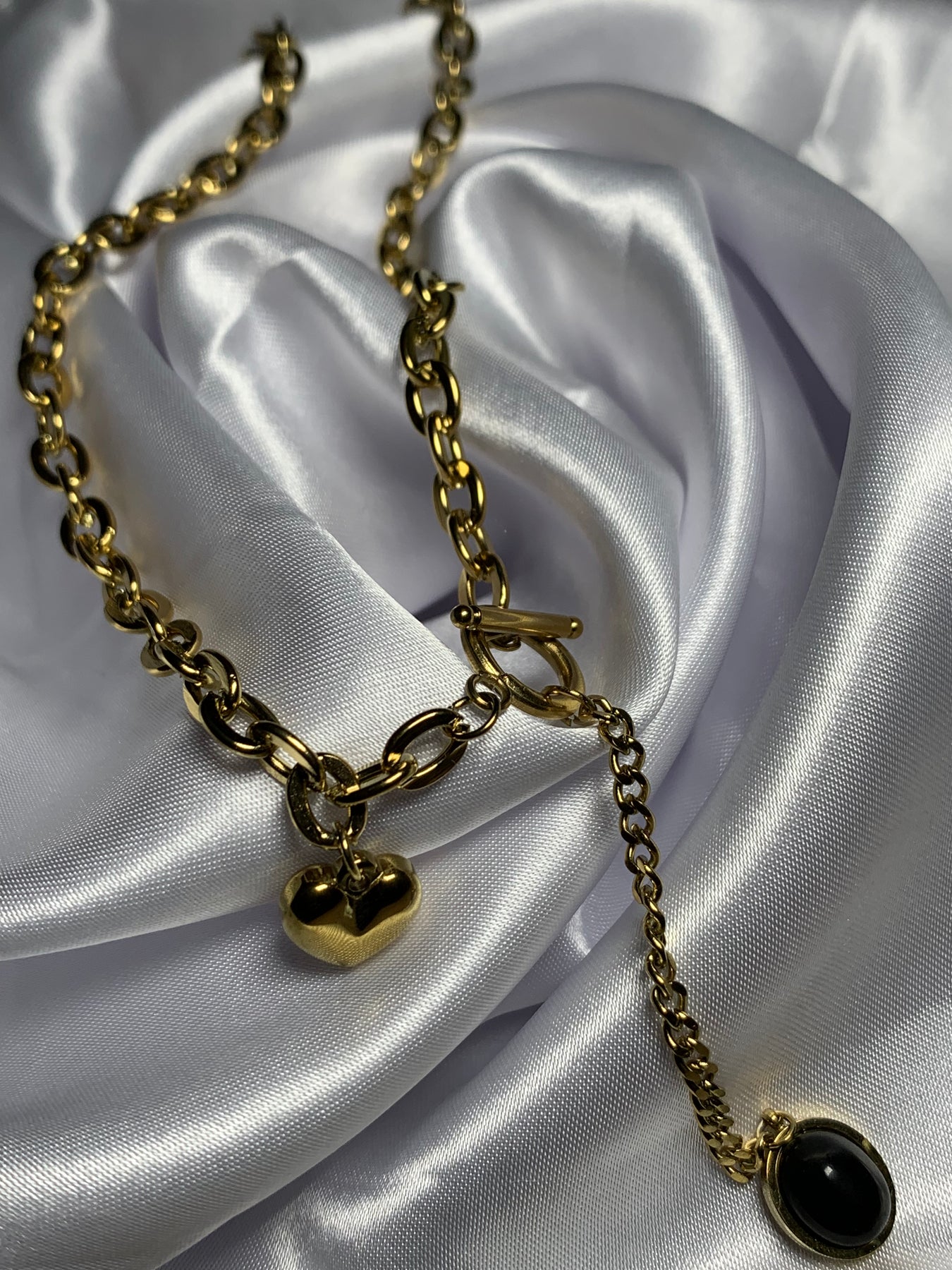 Lina ~ Collier is a bold, Y-shaped stainless steel necklace designed to make a statement at any event. Its sleek and daring silhouette adds an edgy touch to your ensemble, effortlessly blending with everything from casual daywear to elegant evening looks. Crafted for durability and style, Lina is the perfect accessory to express confidence and individuality.